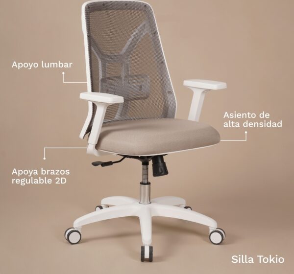 - Respaldo tapizado en tela de red color: Azul, gris perla, naranja, negro, visón, rojo, verde, petróleo.